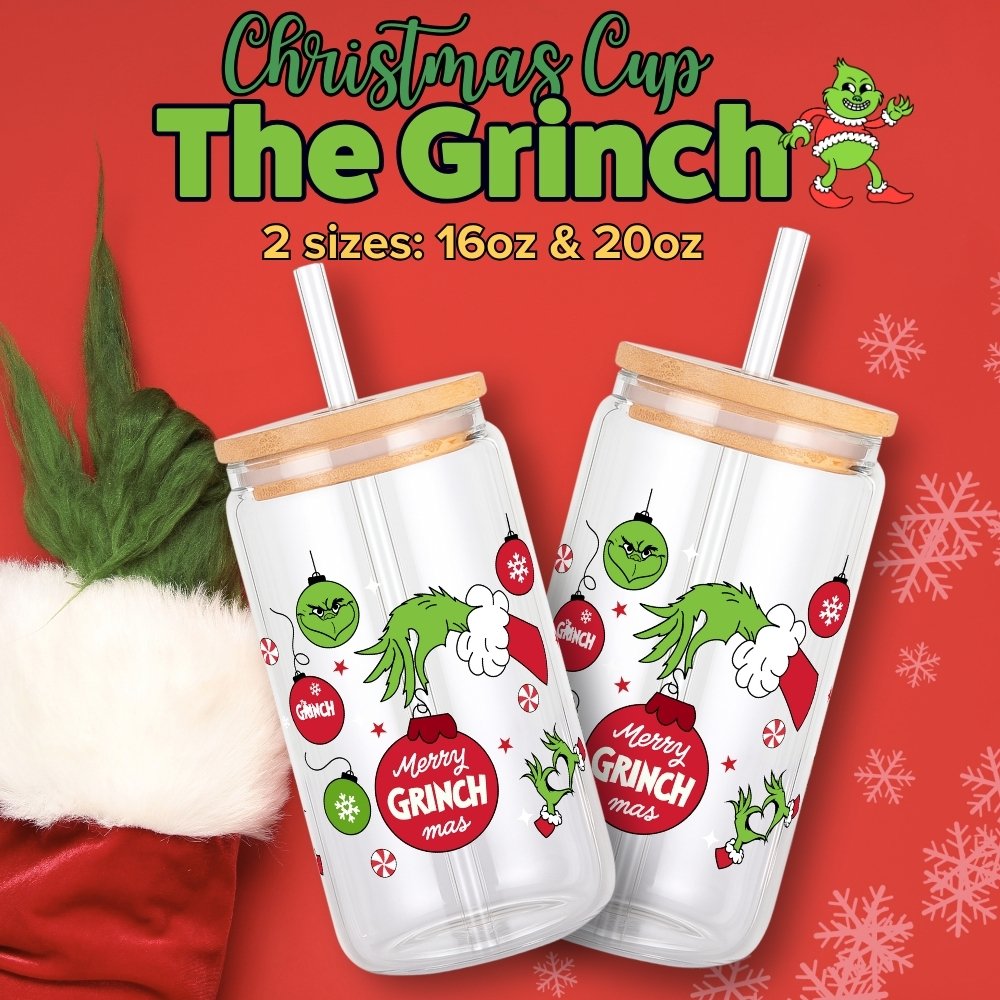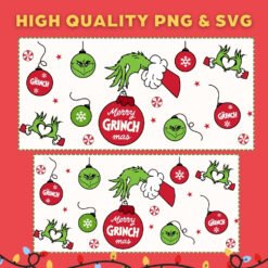 Grinch Christmas 16oz & 20oz Glass Can Wrap | Digital PNG 300 DPI – Design 4