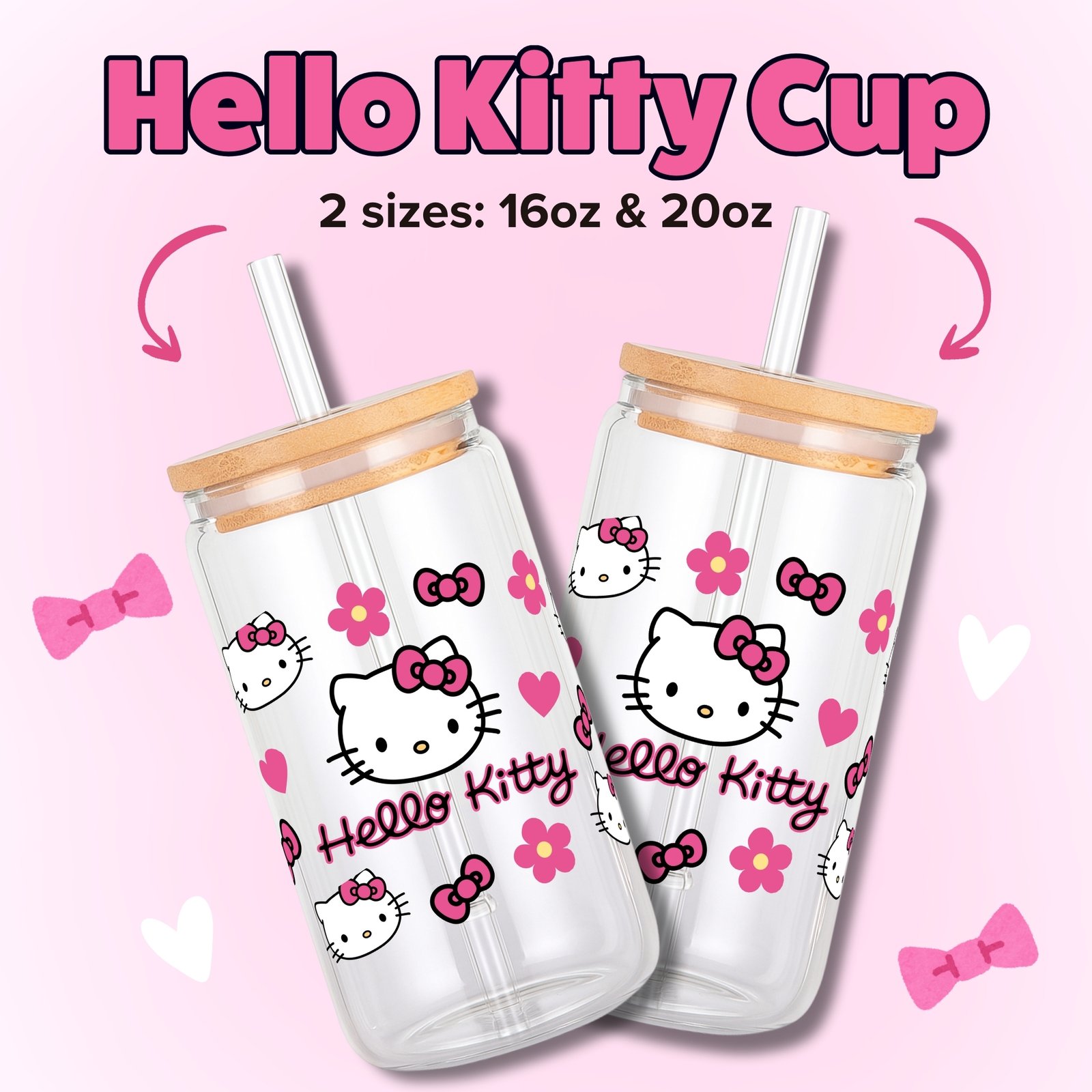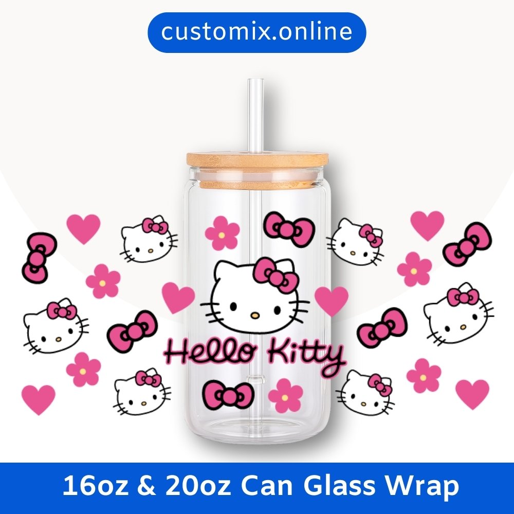 Hello Kitty Pink 16oz & 20oz Glass Can Wrap | Digital PNG 300 DPI & SVG