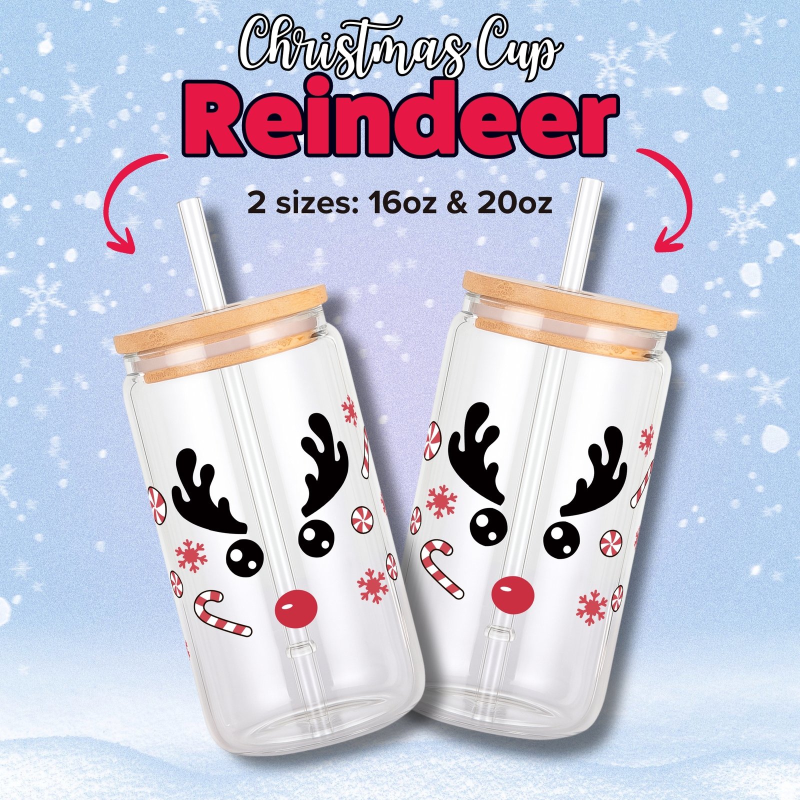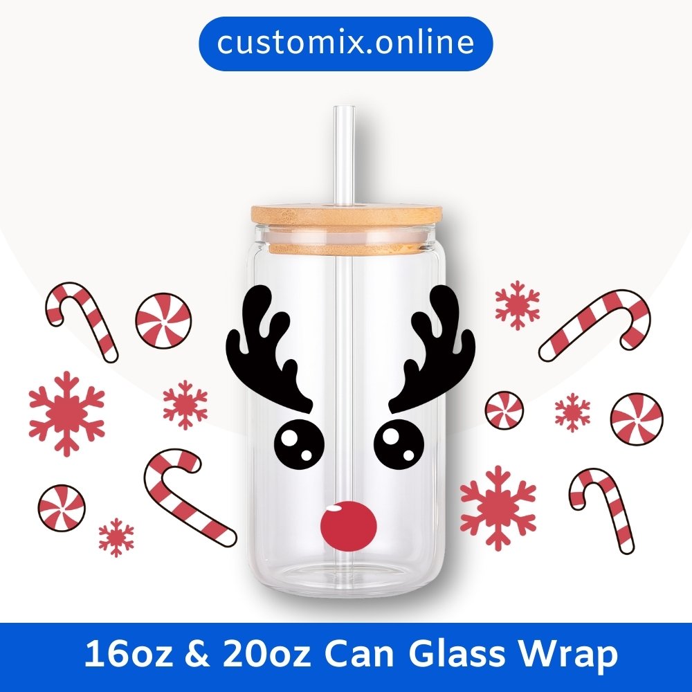 Reindeer Christmas 16oz & 20oz Glass Can Wrap | Digital PNG 300 DPI & SVG