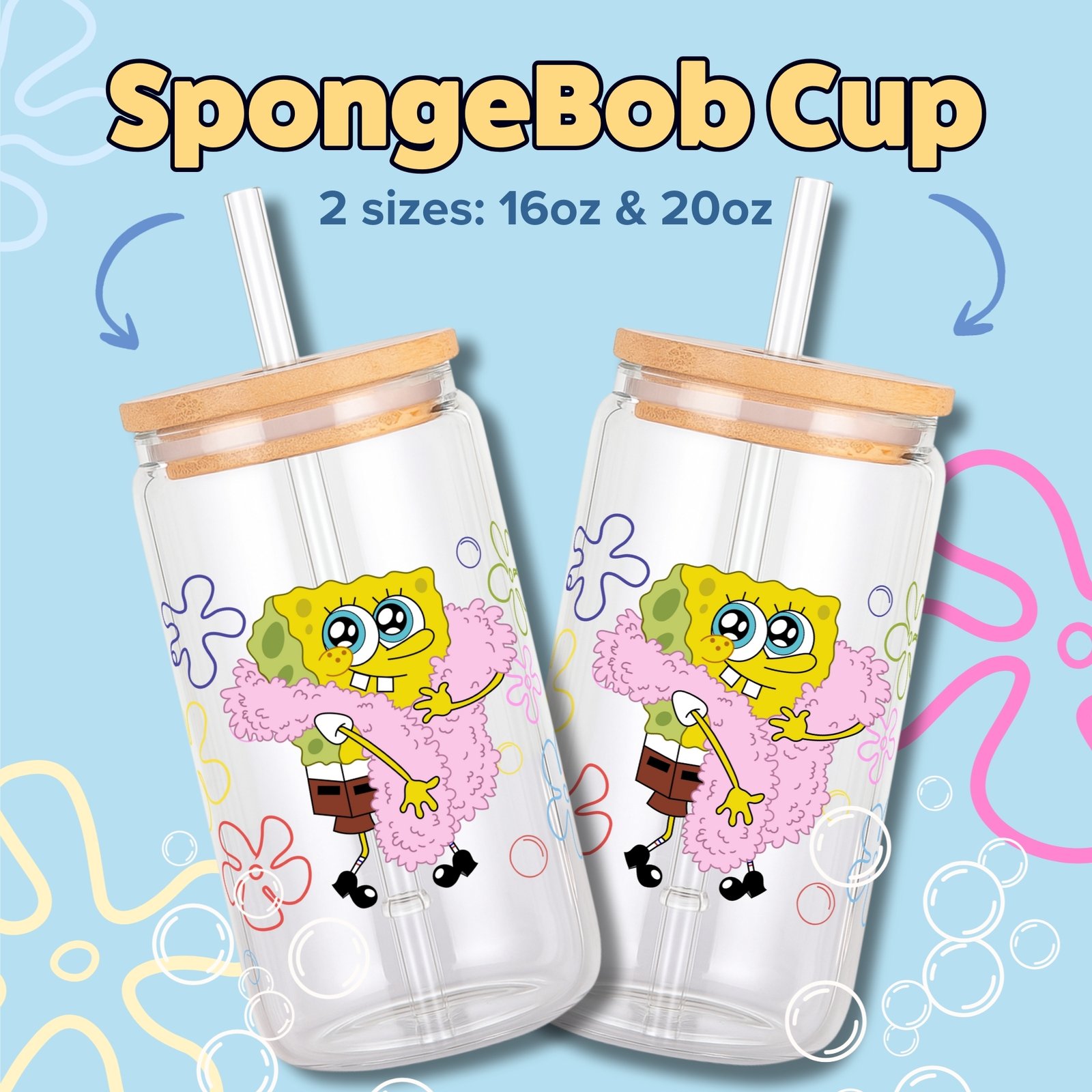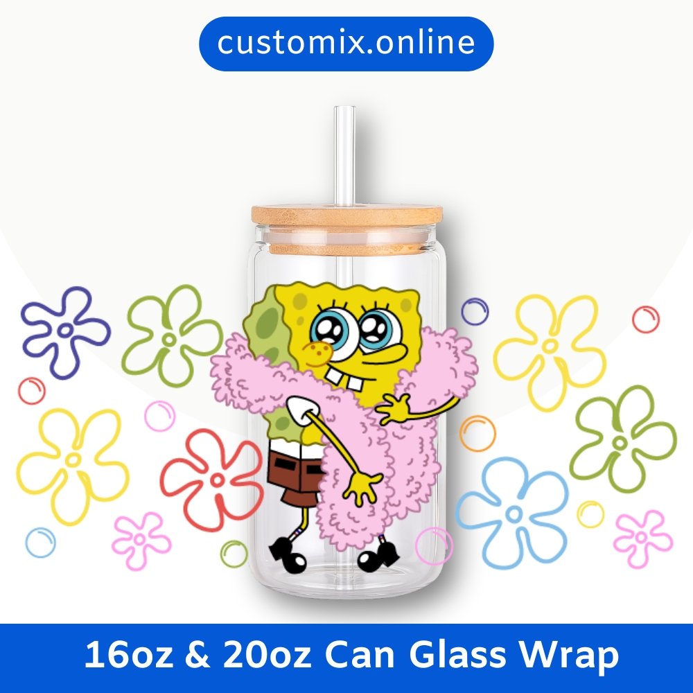 SpongeBob SquarePants 16oz & 20oz Glass Can Wrap | Digital PNG 300 DPI & SVG